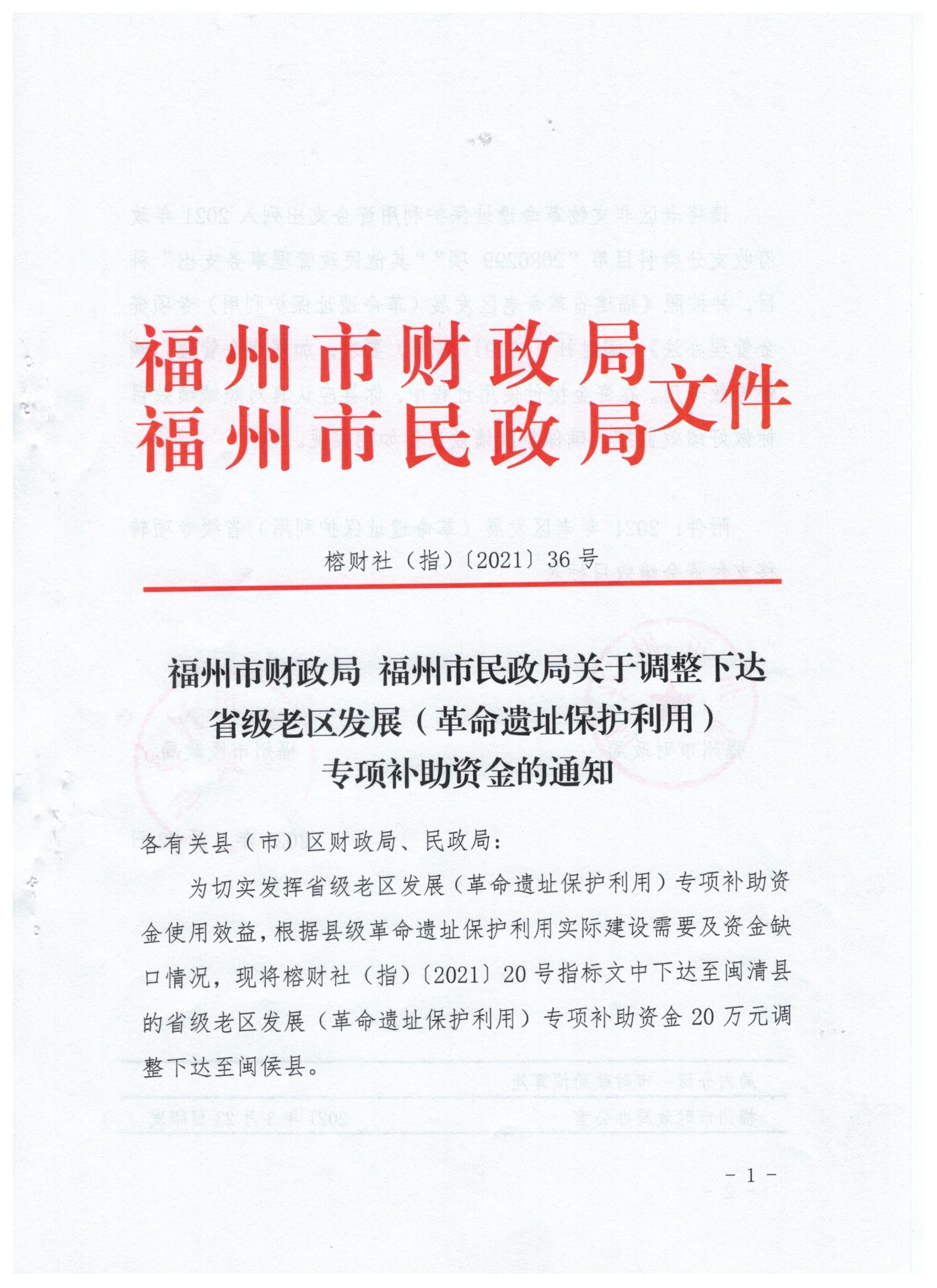 三级色情 财政局 三级色情 关于调整下达省级老区发展(革命遗址保护利用)专项补助资金的通知