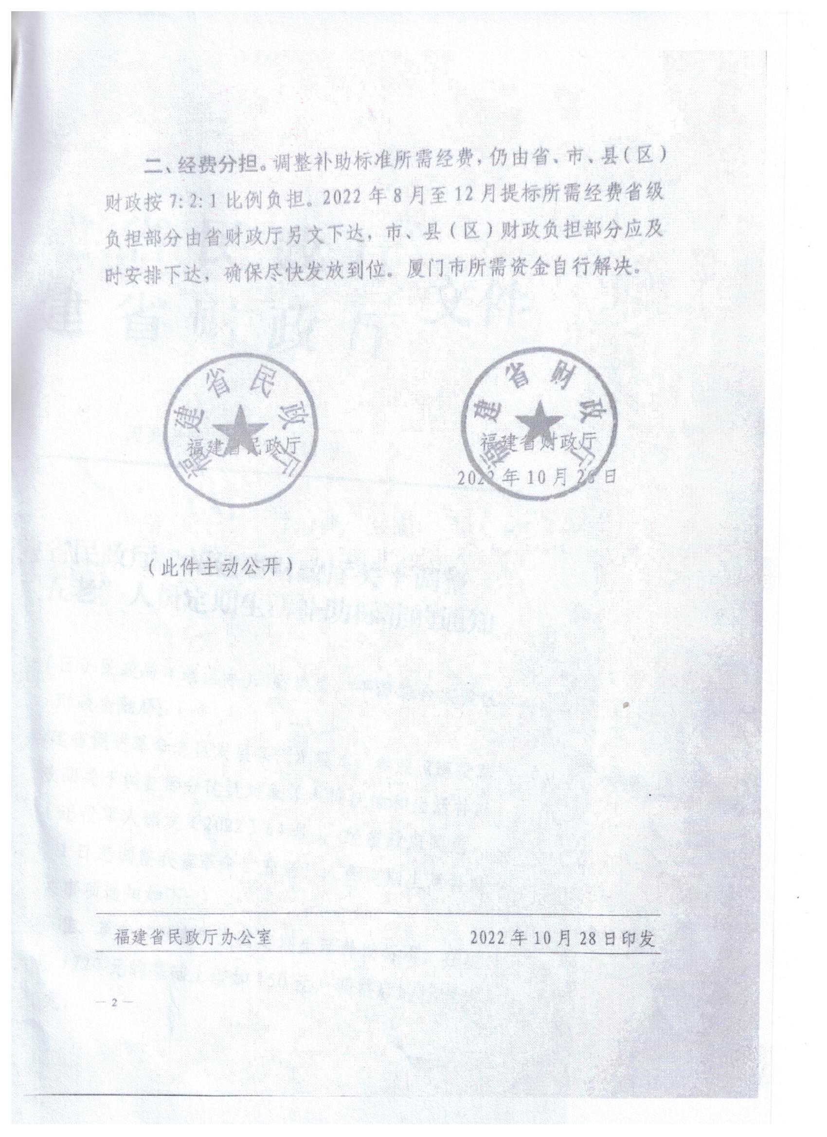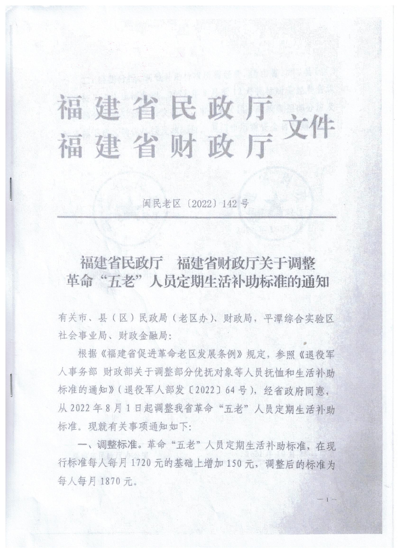 福建省财政厅 福建省民政厅关于调整革命“五老”人员定期生活补助标准的通知