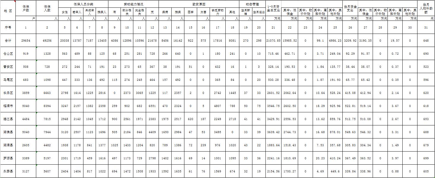 三级色情 农村居民最低生活保障统计表(5月)