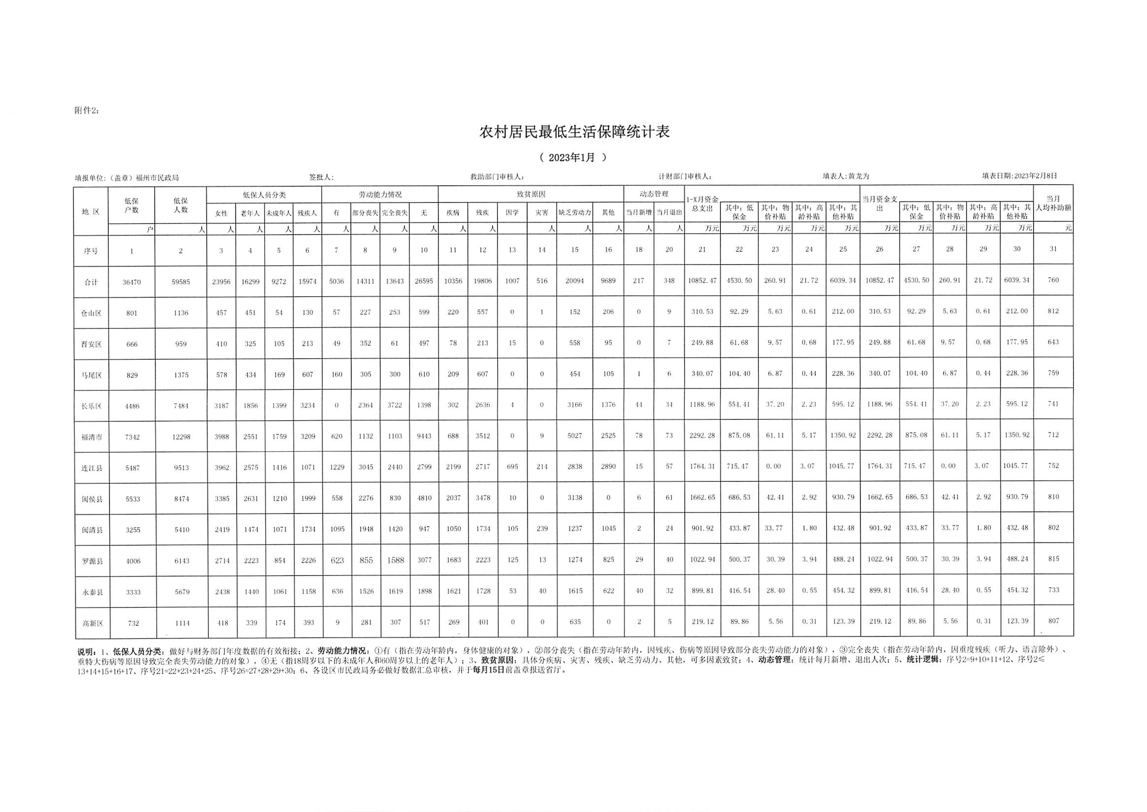 2023年三级色情 农村居民最低生活保障统计表(1月)