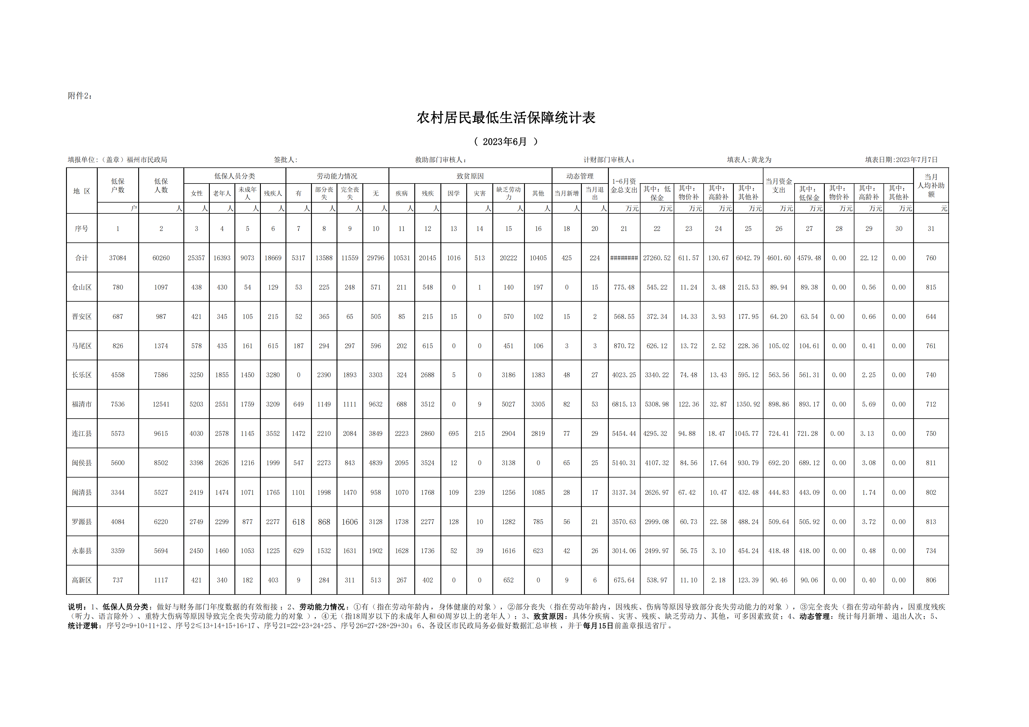 2023年三级色情 城市农村最低生活保障统计表(6月)