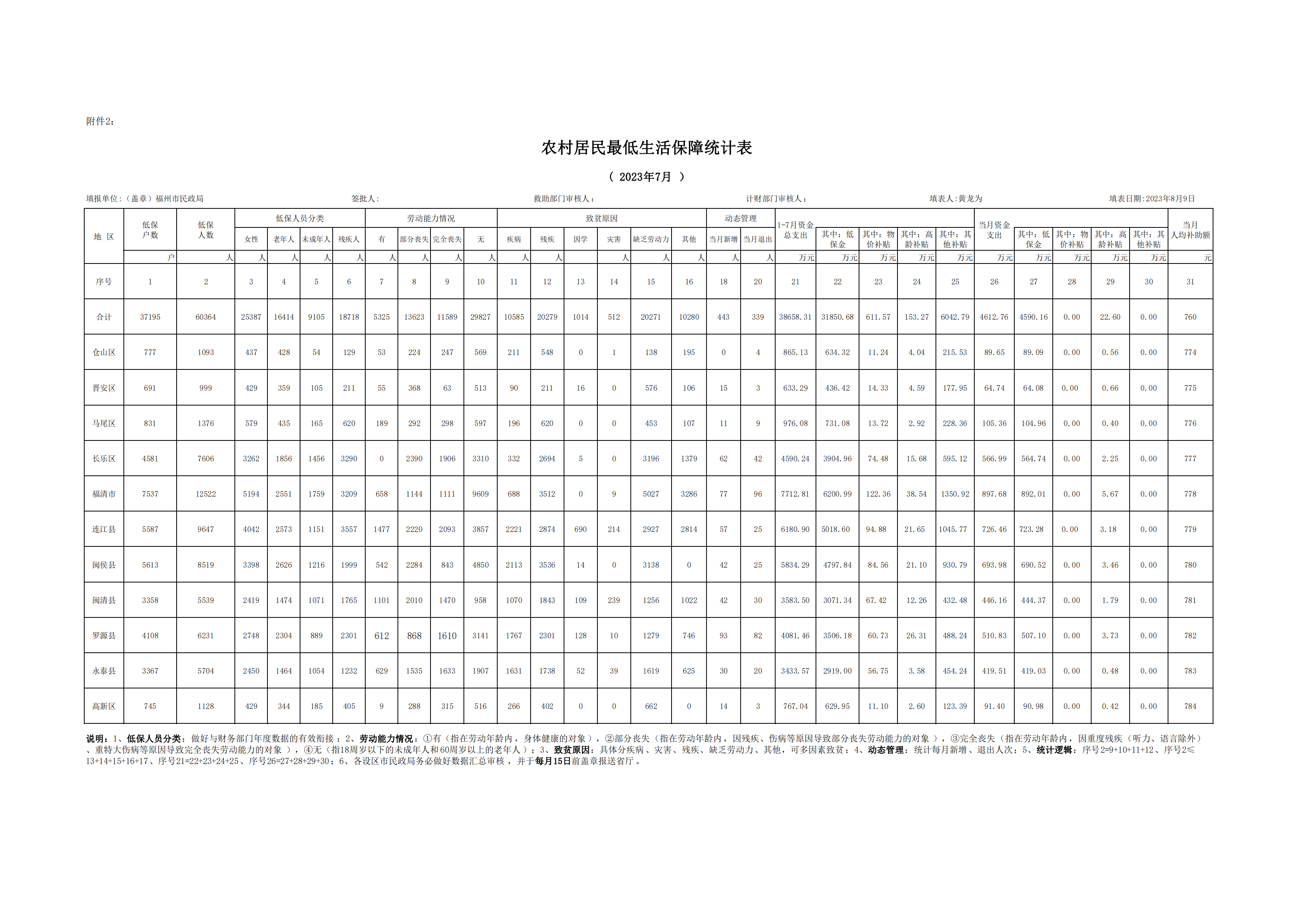 2023年三级色情 农村居民最低生活保障统计表(7月)