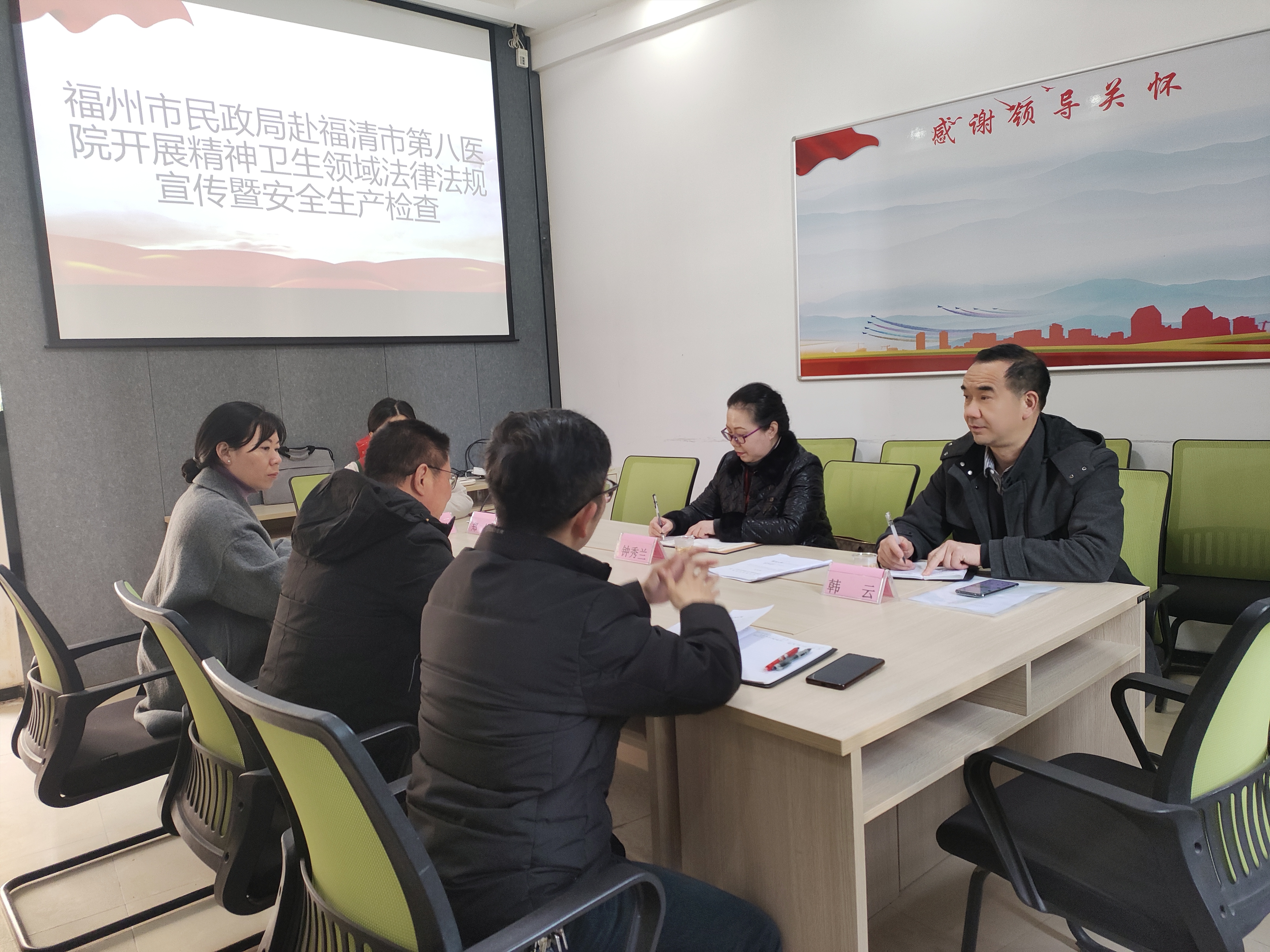 4月1日上午,市民政局四级调研员钟秀兰带队,福利慈善处相关人员参加,赴长乐区、福清市局属精神卫生福利机构开展《精神卫生福利机构重大事故隐患判定标准》(以下简称《标准》)和《精神卫生福利机构管理办法》(以下简称《办法》)学习宣传活动,并进行安全生产检查。