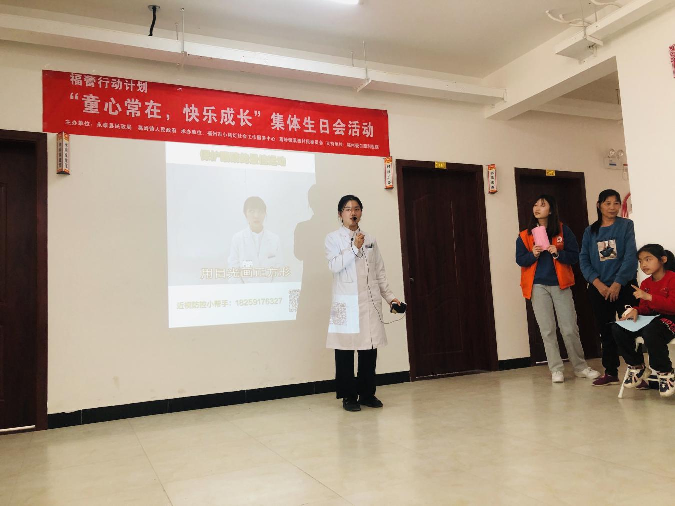 2021年4月10日,在福州爱尔眼科医院的倾情支持下,在永泰县葛岭镇溪西村开展“童心常在,快乐成长”集体生日会活动。通过丰富多彩的互动,把祝福送给孩子们,让他们借助集体生日会的平台,结交到更多的朋友一起成长,给孩子们留下一个难忘美好的回忆。